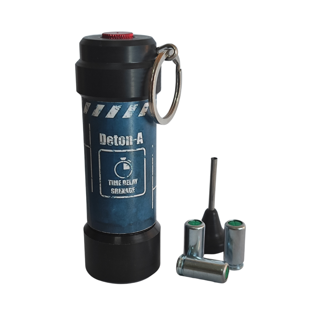 El resultado de más de un año de diseño, prototipado y testeo. Tras ser avalada por la Intervención Central de Armas y Explosivos, y ser testada en condiciones reales de uso por más de cien jugadores en campos de todo España, Deton-A es un producto acabado.
